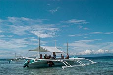 So einen Sonnenuntergang fast jeden Abend. Die Fischer fuhren mit ihren kleinen Booten zum Fischen raus, die Vögel stürzten sich auf die Moskitos und besetzten die Bootsdächer.Wenn die Sonne dann hinter den Bergen von Negros verschwunden war, wurde es langsam Zeit, sich zum Nachttauchen fertig zu machen. Die Wege sind kurz, sei es zu unserem Zimmer, zum Essen, zu den kleinen Shops, den Bars, zur Tauchbasis. Jederzeit konnte man mal auf einen Kaffee oder Tee vorbeischauen, sich Rat holen, klönen. Kalle war immer ansprechbar, oder Abeth, die supernette Sekretärin. Ihr wurde trotz fortgeschrittener Schwangerschaft nichts zuviel. Wir wünschen ihr, ihrem Mann und dem Baby alles, alles Gute. Von der Terrasse aus hatten wir einen herrlichen Blick auf das Meer. Wir konnten das Treiben am Hausriff beobachten, ab und zu kam mal ein Verkäufer vorbei und hoffte auf ein kleines Geschäft, aber alles langsam, langsam. Wir sahen Gewitter und Blitze in der Ferne, tolle Wolkenformationen, bei klarem Wetter den Vulkankrater von der Insel Negros und immer Pescador Island.